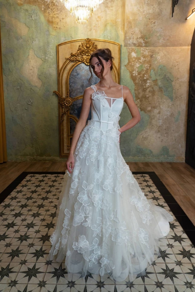 Delicately romantic, Hope features a myriad of lace appliqu��s over layers of soft tulle.